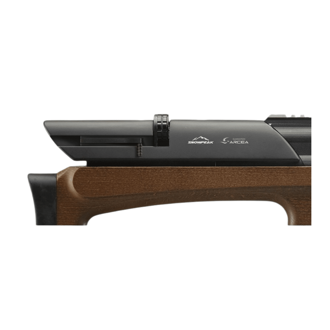 Carabina de aire comprimido PCP Arcea Snowpeak M40. Ofrece un equilibrio perfecto entre precisión, suavidad de disparo y una estética clásica gracias a su culata de madera de haya europea. Diseñada para tiradores que buscan rendimiento y comodidad, incorpora un depósito de 240 cc con presión máxima de 200 bares y un manómetro frontal que permite controlar la carga de aire de forma rápida y visual.