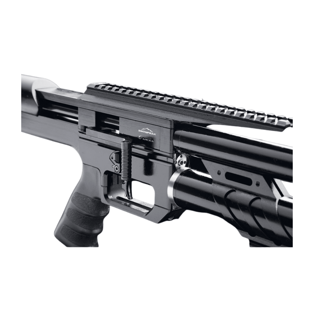 Carabina de aire comprimido PCP Arcea Snowpeak M60. Está diseñada para ofrecer un rendimiento equilibrado, preciso y muy cómodo en cada sesión de tiro. Equipada con un depósito de 205 cc y una presión máxima de 200 bares, incorpora un manómetro frontal que permite comprobar la presión de forma rápida y visual. Además, cuenta con válvula reguladora con su propio manómetro, así como un manómetro adicional para la cámara de baja presión, ofreciendo un control total del funcionamiento interno.