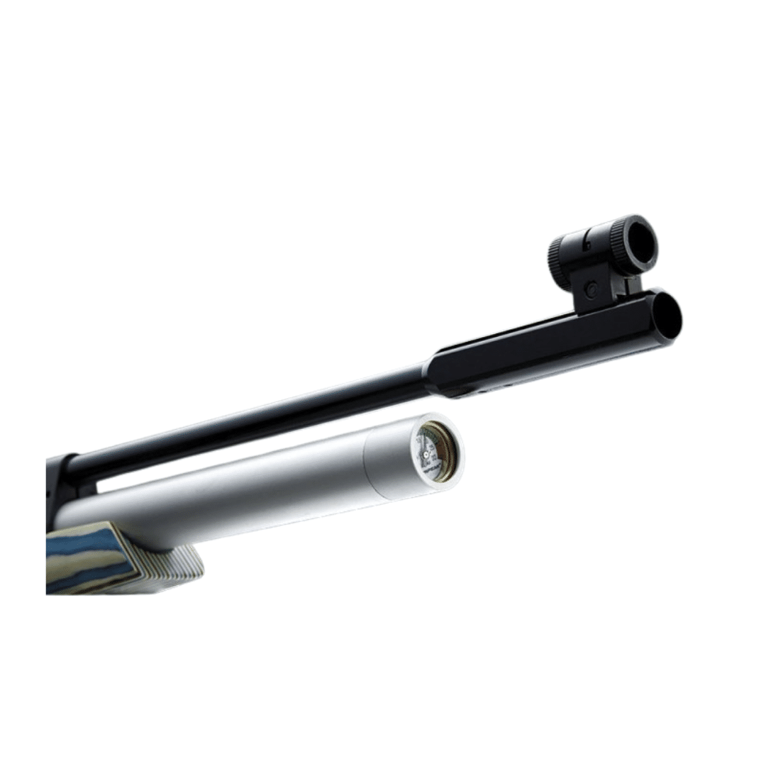 Carabina de aire comprimido PCP Arcea Snowpeak MAT300. Es una opción excepcional para quienes desean iniciarse en el tiro deportivo con un arma precisa, estable y totalmente preparada para competición. Su diseño monotiro garantiza la máxima regularidad en cada disparo, mientras que su nuevo raíl inferior permite instalar accesorios adicionales para personalizar la experiencia del tirador. Está equipada con un depósito desenroscable de 200 cc y una presión máxima de 200 bares, incorpora un manómetro frontal para un control rápido del nivel de aire. Su válvula reguladora, combinada con un sistema de manómetro dedicado, asegura una entrega de aire constante, ofreciendo agrupaciones muy precisas. Con una potencia de 7,5 julios, es ideal para disciplinas de tiro de precisión.