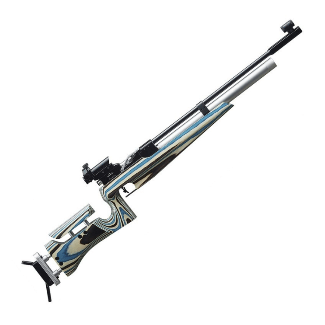 El diopter regulable de alta precisión permite un ajuste fino del punto de impacto, mientras que la culata de madera laminada, totalmente ajustable, proporciona una ergonomía excelente y se adapta a las necesidades de cada tirador. El cerrojo de palanca ofrece un manejo suave y fiable, y el gatillo de dos tiempos, regulable en altura y con seguro, garantiza un disparo limpio, progresivo y relajado. Su cañón enchaquetado y el carril de 11 mm permiten instalar visores o accesorios ópticos con facilidad.