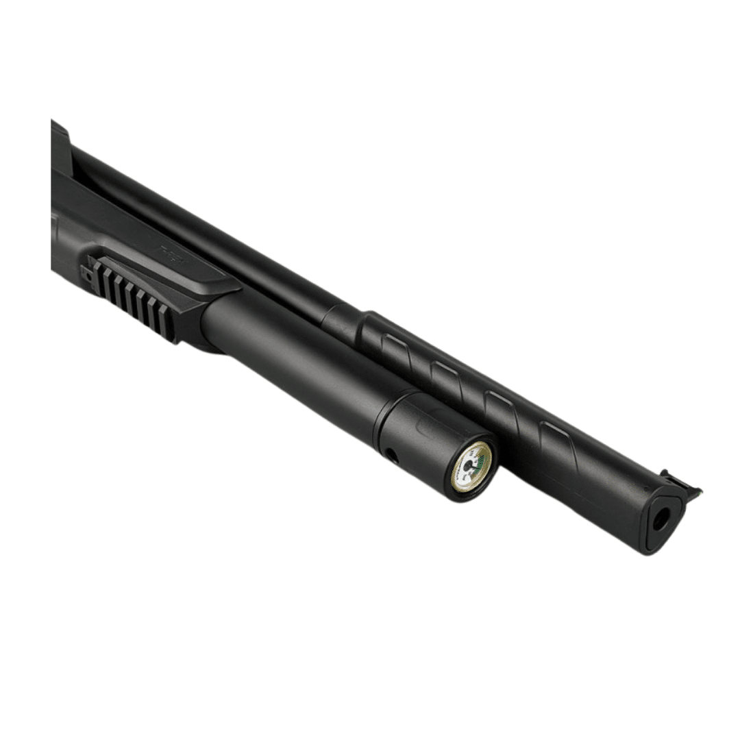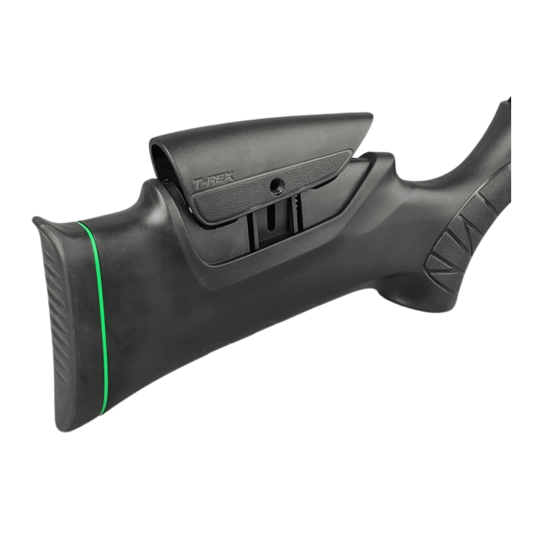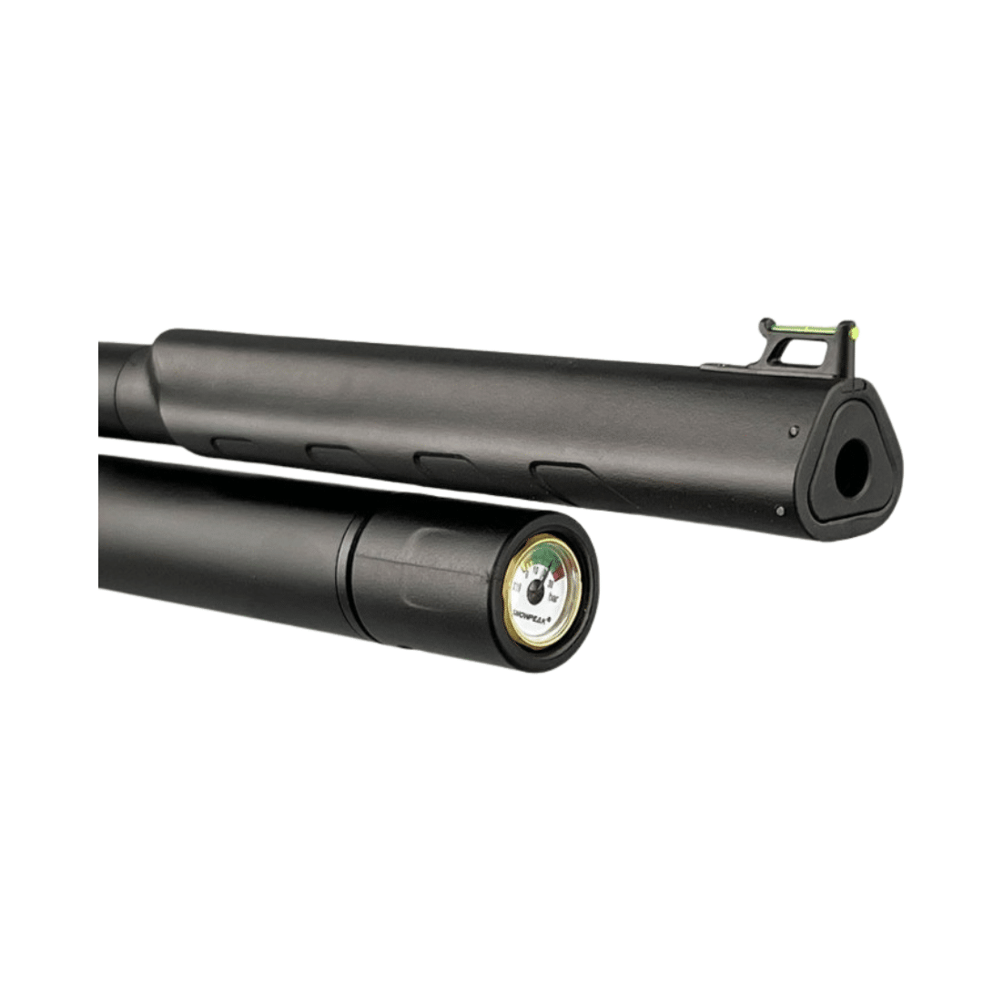 Carabina de aire comprimido PCP Arcea Snowpeak T-REX. Destaca por su combinación de autonomía, precisión y ergonomía, ofreciendo un rendimiento muy equilibrado para tiradores que buscan constancia y comodidad. Su depósito de 230 cc, con presión máxima de 200 bares, incorpora manómetro integrado y válvula reguladora, garantizando una entrega de aire estable y agrupaciones muy consistentes incluso a 50 metros. La carga se realiza mediante sonda con conector rápido Foster, lo que facilita un llenado seguro y rápido. El cerrojo convertible para diestros y zurdos aporta versatilidad, mientras que el gatillo de dos tiempos con seguro permite un disparo suave y controlado. Con una potencia inferior a 24 julios, ofrece un equilibrio ideal entre precisión y eficiencia, alcanzando aproximadamente 60 disparos óptimos por carga. El silenciador integrado reduce notablemente el ruido, y el carril de 21 mm permite montar visores con total facilidad. Su culata sintética regulable aporta comodidad y adaptabilidad al tirador. Una opción muy completa para quienes buscan una carabina PCP fiable, precisa y cómoda, tanto para tiro recreativo como para entrenamientos más exigentes.