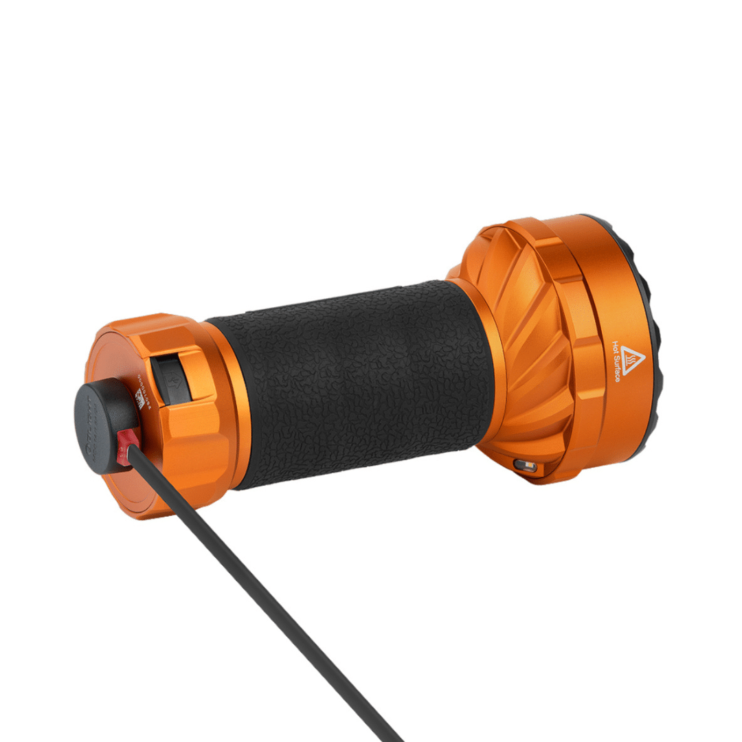 Linterna Olight Marauder Mini 2, de alta potencia, con 10.000 lúmenes, 750 m de alcance, 5 modos de iluminación y cuerpo de aluminio A6061‑T6. Compacta, resistente e ideal para outdoor y rescate.