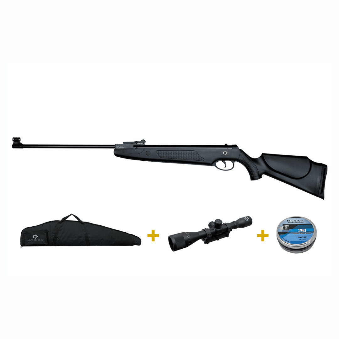 Pack Norica: Carabina Dragón + Visor 4×32 con anillas + funda + Munición 250 balines Match.