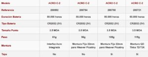 Punto rojo Aimpoint Acro C2, con diseño cerrado para pistolas. La generación 2 de la serie Acro fue lanzada en el 2021. El mismo tamaño y peso que la versión anterior pero con una mayor resistencia y durabilidad. Batería CR2032 con un mayor tamaño que proporciona 50.000 horas de funcionamiento continuo. Incoporra la última tecnolodía LED y un circuito eléctrico totalmente nuevo. En el mercado hay disponilidad de monturas para usar la serie ACRO- de Aimpoint tanto para arma corta como para arma larga. La serie ACRON es la más pequeña y ligera de los productos AIMPOINT