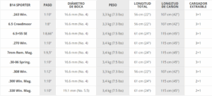 Todos los rifles B14 son capaces de producir agrupaciones de sub -1,0 MOA o menos a 100 yardas (91,44 metros) utilizando munición de grado match de fábrica.