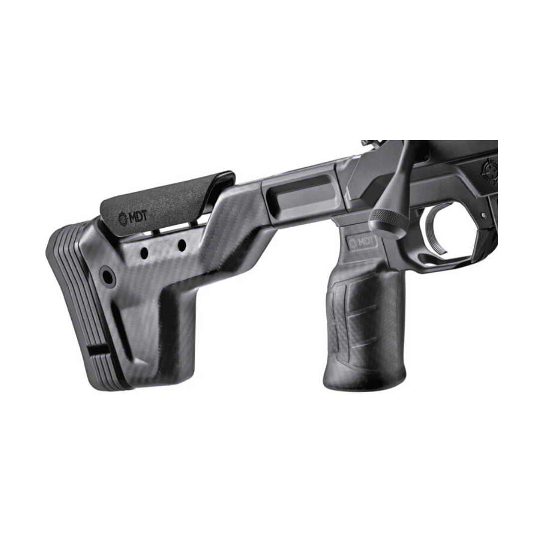 - Culata MDT HNT26. El MDT HNT26 es el chasis de rifle más ultraligero del mercado, con un peso inicial de solo 700 g. Fabricado con culata/base de aleación de magnesio, delantera y empuñadura de pistola en fibra de carbono, y una cantonera de carbono rellena de espuma, ofrece una absorción superior de vibraciones y retroceso. El resultado es una plataforma estable, ligera y fiable, ideal para disparos de seguimiento precisos en condiciones exigentes.