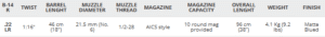 - Cargador extraíble estilo AICS. El cargador es de una sola pila 22LR mag que está creado con las mismas dimensiones que un AICS mag de acción corta estándar. Tiene una capacidad para 10 cartuchos.