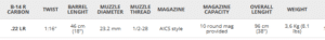 - Cargador extraíble estilo AICS. El cargador es de una sola pila 22LR mag que está creado con las mismas dimensiones que un AICS mag de acción corta estándar. Tiene una capacidad para 10 cartuchos.