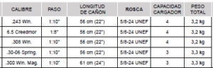 - Cargador extraíble Cascade: capacidad de 4 balas en calibres 243 Win, 6.5 Creedmoor y 308 Win. Y 3 balas en calibres 30-06 Spring y 300 Win Mag.