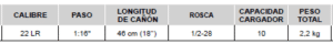 • Cañón roscado de 18″: que proporciona un equilibrio perfecto entre maniobrabilidad y rendimiento balístico en el calibre 22 LR. Además, el cañón viene roscado de fabrica con rosca 1/2-28, compatible con supresores y frenos de boca, adaptándose a las necesidades del usuario. Esta versatilidad permite adaptar el rifle a diferentes modalidades de uso y preferencias personales, mejorando el control del disparo y la comodidad.
