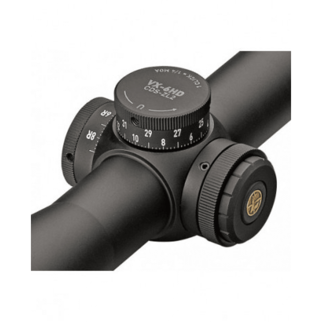 - Torreta de bajo perfil, con un máximo de dos rotaciones completas, permitiendo una elevación máxima de 38 MOAs. El botón de bloqueo permanece a la vista durante la primera vuelta y se esconde durante la segunda. El sistema CDS-ZL2 (Custom Dial System ZeroLock2) para la torreta de altura, se maneja fácilmente para establecer posiciones de forma rápida, basta con presionar el botón de bloqueo a la vez que realizamos el giro. Además, el sistema permite una fácil puesta a cero y por tanto la vuelta a la posición de partida de forma muy rápida.