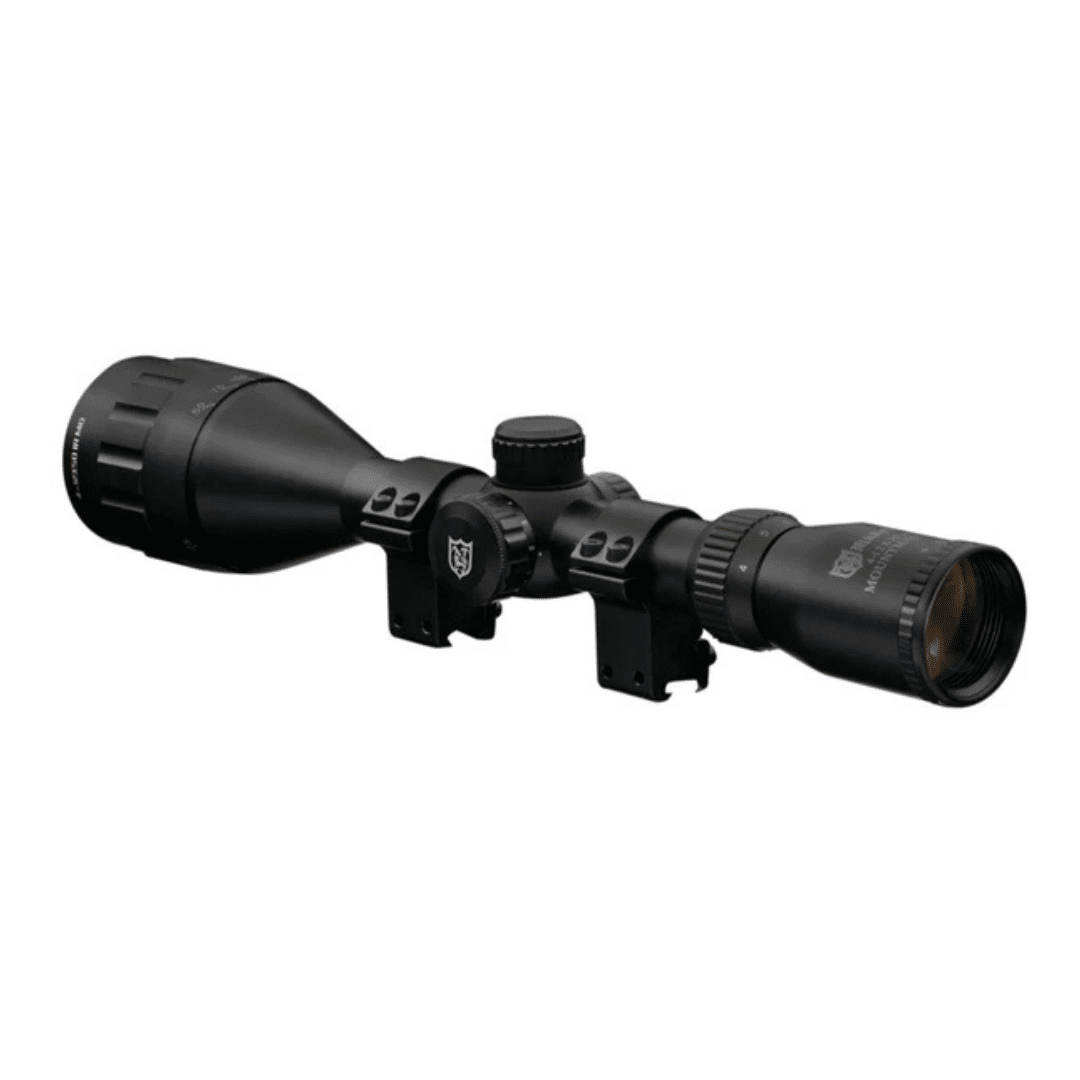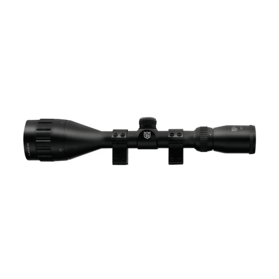 - Ajuste de paralaje en la campana (AO), desde 10 yardas hasta el infinito, permitiendo un enfoque preciso a cualquier distancia. Los modelos AO son: 4×32, 3-9×40 y 4-12×50.