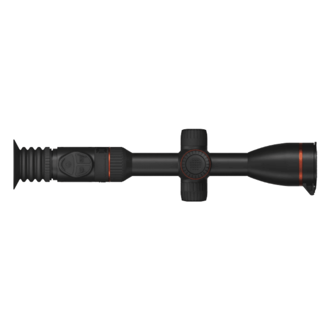 - Sistema ThermTec AutoSight (TASS). Tras realizar un disparo con gran aumento, se activa automáticamente el aumento base, ampliando el campo de visión para mantener el objetivo bien localizado. Esta función elimina la necesidad de ajustes manuales, permitiéndote reaccionar con rapidez y seguir la acción sin interrupciones.